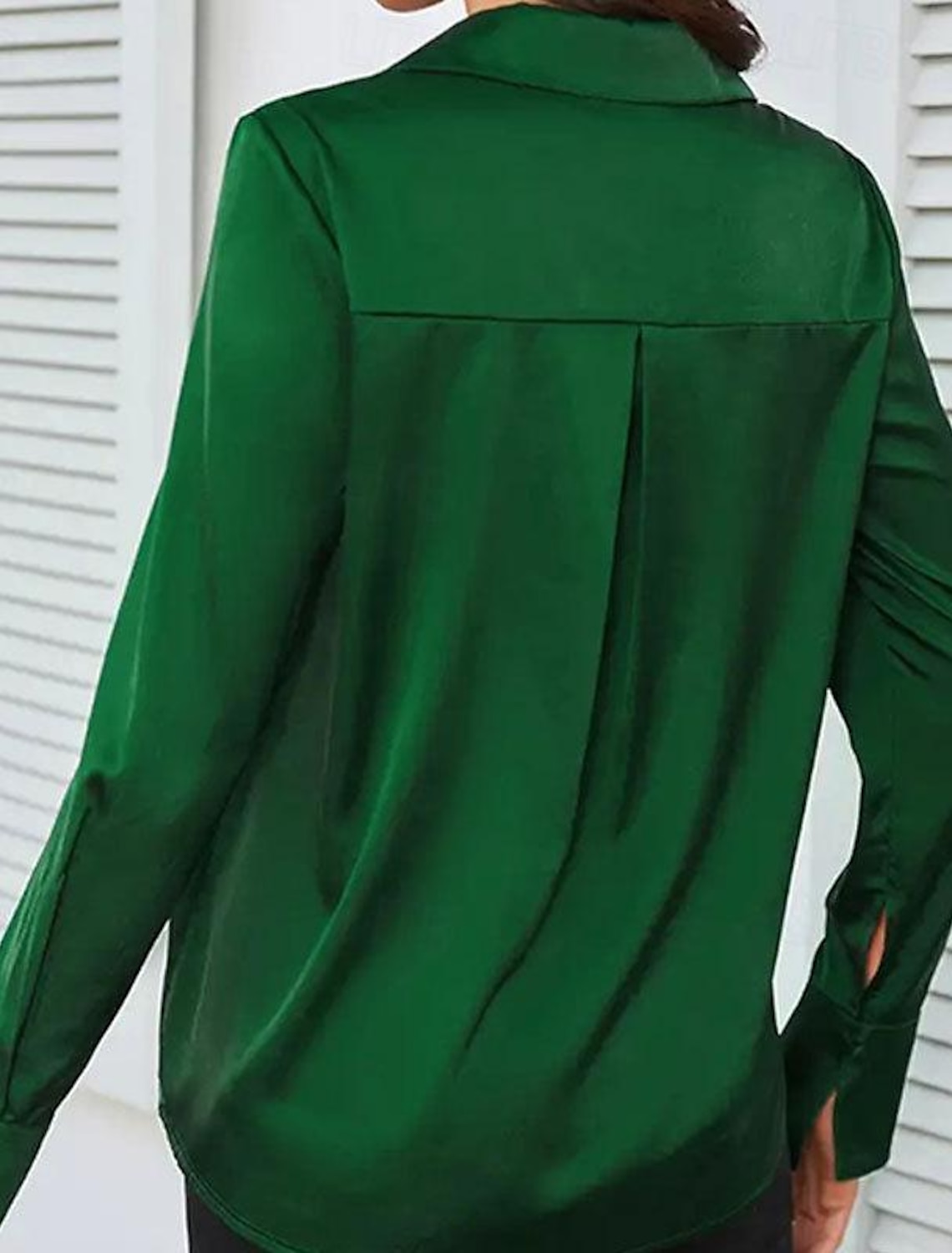 [Design Highlights] Featuring a classic button-down design with a refined shirt collar, this blouse includes long sleeves equipped with buttoned cuffs. The plain green hue provides a versatile backdrop, making it easy to pair with other wardrobe staples.